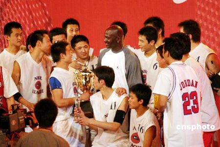 終于,當(dāng)主持人宣布喬丹即將入場之后,在尖叫、高呼、跺腳、鼓掌聲中,邁克爾·喬丹一襲運(yùn)動(dòng)裝步入賽場主席臺(tái),并頻頻向觀眾點(diǎn)頭致謝。好不容易穩(wěn)定了大家的情緒,比賽繼續(xù)進(jìn)行,盡管雙方隊(duì)員都非常投入地爭奪冠軍,但似乎已經(jīng)沒有觀眾關(guān)心比賽了。最后,沈陽三十一中以六十二比五十四戰(zhàn)勝對手。
