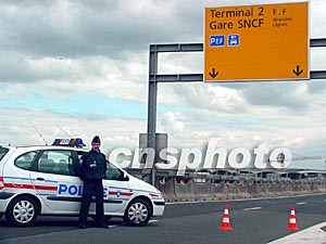 圖:法國警方當(dāng)天封鎖通往出事候機廳的通道