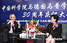 中國科學(xué)院與德國馬普學(xué)會(huì)科學(xué)合作三十周年慶祝大會(huì)五月二十四日在北京舉行,國務(wù)委員陳至立出席會(huì)議并會(huì)見了馬普學(xué)會(huì)主席格盧斯教授。作者:徐曦弋
