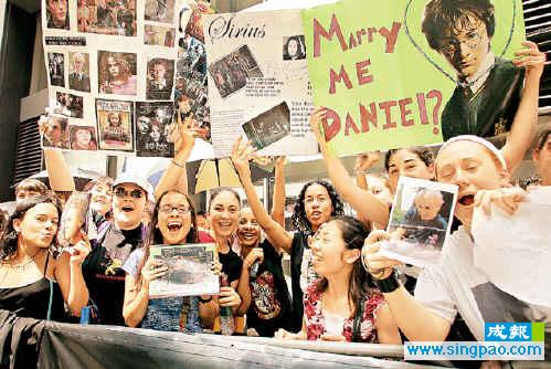 中新網(wǎng)5月25日電 據(jù)香港成報(bào)報(bào)道,魔幻電影《哈利波特》第三集《哈利波特與阿茲卡班的囚徒》前日在紐約作全球首映。演哈利的英國(guó)影星丹尼爾·拉德克里夫除獲不少名人捧場(chǎng)外,更獲數(shù)千位影迷圍睹,當(dāng)中不少更舉頭著紙牌向丹尼爾當(dāng)場(chǎng)求婚。