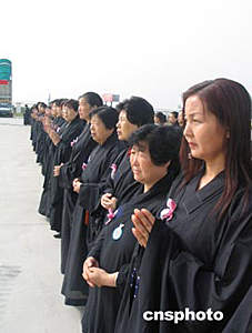 在儀式上,一誠法師、覺光法師、學誠法師分別拈香,誦經(jīng)、跪拜。來自西安大慈恩寺六十多名僧侶儀仗隊高奏佛樂,數(shù)百名佛家居士齊聲念佛。