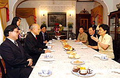 談到近來香港人學習普通話成風時,劉延東笑著說:“要說學習普通話,還數霍先生學得好。我剛認識霍先生時,他還不會講普通話。后來越講越好,可以在政協(xié)用普通話主持會議了。倒是我很慚愧,這么多年了,還不會講廣東話!币幌捯饾M屋笑聲。