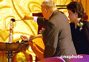 中新網(wǎng)5月26日電 “香港佛教暨各界迎請(qǐng)佛指舍利瞻禮祈福大會(huì)”開幕儀式今天上午在香港會(huì)議展覽中心舉行,香港特區(qū)行政長官董建華致開幕詞時(shí)感謝中央政府特別批準(zhǔn)把陜西法門寺珍藏的佛指舍利及二十件一級(jí)國寶文物安排來港展出,認(rèn)為這是佛教徒以至全港市民的福氣。