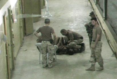 在阿布格萊布監(jiān)獄的虐囚事件中,軍情人員涉嫌鼓勵美國士兵虐待囚犯一直是倍受關(guān)注的中心問題。按照規(guī)定,軍事警察的責(zé)任是看守囚犯,無權(quán)參與審訊過程。但負(fù)責(zé)調(diào)查阿布格萊布監(jiān)獄虐囚事件的塔古巴上將卻在一份報告中引用了一名獄警的證詞,稱軍情人員經(jīng)常游說看守人員虐待俘虜,以讓他們在審訊中松口。