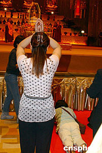 連日來,在香港會(huì)展中心舉行的“香港佛教暨各界迎請(qǐng)佛指舍利瞻禮祈福大會(huì)”,吸引眾多信眾瞻禮佛指舍利。中新社記者:錢興強(qiáng)