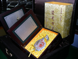 1996年6月,在錦州凌川酒廠地下偶然挖掘出清道光乙已年(1845年)穴藏貢酒四個木酒海(古代盛酒容器),藏酒四噸左右。經(jīng)專家考證,這是一批穴藏一個半世紀的貢酒實屬“世界罕見,珍奇國寶”,專家為之取名為“道光廿五”。