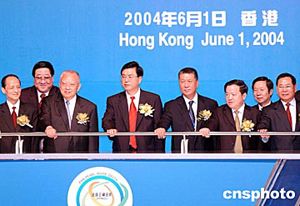 香港特區(qū)行政長官董建華、廣東省委書記張德江、泛珠三角九個省、以及香港和澳門特區(qū)領導人主持開幕儀式。作者:洪少葵
