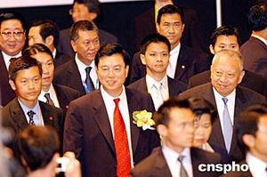 特區(qū)行政長官董建華陪同中共中央政治局委員、廣東省委書記張德江等與會官員出席開幕式。作者:洪少葵  在香港會展中心進行的「泛珠三角區(qū)域合作與發(fā)展論壇」會場。作者:洪少葵