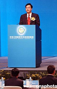 “泛珠三角區(qū)域合作與發(fā)展論壇”今天在香港開幕,張德江在開幕式上發(fā)表了題為“合作發(fā)展共創(chuàng)未來”的講話。他說,目前,廣東與香港、澳門的合作已發(fā)展成為由三地組成的大珠三角區(qū)域合作,并為三地發(fā)展帶來勃勃生機(jī)和實(shí)實(shí)在在的利益。廣東的發(fā)展離不開港澳,港澳的發(fā)展也離不開廣東。二00四年開始實(shí)施的內(nèi)地與港澳更緊密經(jīng)貿(mào)關(guān)系的安排(CEPA),為提升大珠三角的合作發(fā)展帶來新的機(jī)遇。粵港澳三地政府高度重視,確定了“前瞻、全局、務(wù)實(shí)、互利”的合作原則,確定了合作的目標(biāo)、領(lǐng)域、項(xiàng)目和措施。
