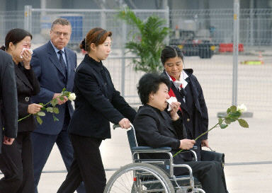 巴黎戴高樂機場候機樓設(shè)計師安德魯向遇難者獻花