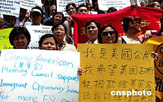 美東時間六月四日下午,紐約華裔新移民參加了紐約移民組織在市政廳前舉行的集會,要求政府撥款建立移民教育基金,幫助新移民提高英語水平和工作技能。作者:趙海燕
