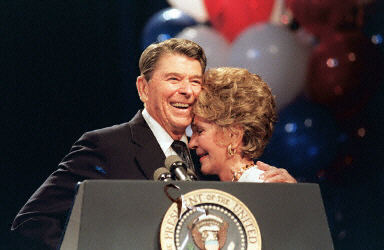 曾經(jīng)是好萊塢電影明星的里根,一九三七年到一九六四年期間,共拍攝了五十一部影片,多為喜劇片和情感片,后當(dāng)選加州州長,開始從政之路--這條路正被動作巨星施瓦辛格重蹈。風(fēng)度翩翩、明星出身的總統(tǒng)使得里根在任上受到不少人的擁捧,但也受到不少人對他執(zhí)政能力的質(zhì)疑。他曾被民主黨人譏笑為“親切的傻瓜”,但里根一九八九年一月以七十八歲高齡離開白宮時,卻成為離任時民望最高的現(xiàn)當(dāng)代美國總統(tǒng)。