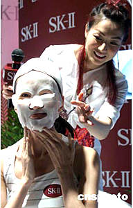 六月七日,百變天后鄭秀文在上海出任SK-II新美白天后,并在活動現(xiàn)場指導(dǎo)一名年輕女孩使用面膜的正確方式。中新社記者:廖文靜