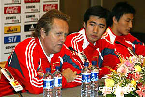 二零零六年世界杯足球賽亞洲區(qū)預(yù)賽中國隊對馬來西亞隊的比賽將于六月九日晚在天津舉行,中國足球隊主教練阿里漢六月八日在新聞發(fā)布會上表示,中國與馬來西亞隊的比賽將是一場艱苦的比賽,隊員們已經(jīng)做好了準(zhǔn)備。中新社記者:毛建軍