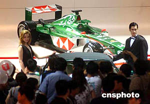 六月十日,二零零四北京國(guó)際車展在北京中國(guó)國(guó)際展覽中心正式開幕,由于中國(guó)將于年內(nèi)舉辦F1賽事,一些外國(guó)廠商紛紛推出自己的方程式賽車吸引中國(guó)觀眾。中新社記者:武仲林