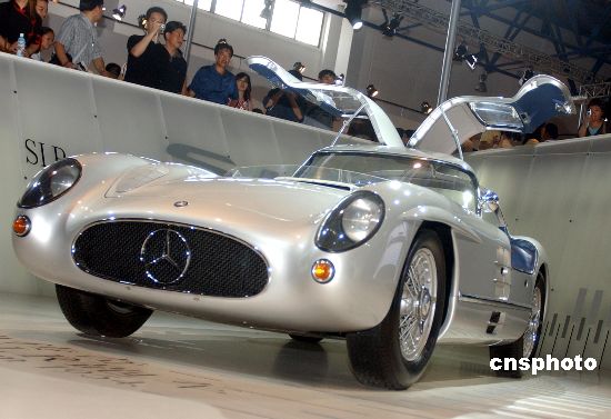 六月十日,二零零四北京國際車展在北京中國國際展覽中心正式開幕,奔馳SLR邁凱倫跑車閃亮登場(chǎng),令現(xiàn)場(chǎng)觀眾大飽眼福。中新社記者:武仲林