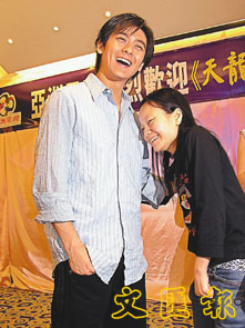 在招待會(huì)上,他又與FANS重演劇中與女角劉亦菲含情脈脈一幕,女FANS面對偶像已不能自持,還要跟他對望,最終小志把她擁在懷中,令該FANS喜不自禁。
