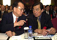 中國(guó)--東盟博覽會(huì)澳門(mén)推介會(huì)十二日在澳門(mén)舉行,廣西壯族自治區(qū)書(shū)記曹伯純與澳門(mén)中聯(lián)辦副主任李勇武在推介會(huì)上親切交談。作者:梁永強(qiáng)