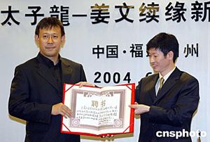 影帝姜文六月十三日在福州出席“太子龍-姜文續(xù)緣新聞發(fā)布會(huì)”時(shí),接受浙江太子龍服飾有限公司董事長(zhǎng)王培火頒發(fā)的聘書,繼續(xù)擔(dān)任太子龍形象代言人。這種延續(xù)合作在中國(guó)文藝界名人中為數(shù)不多。由姜文監(jiān)制并主演的太子龍新廣告片十三日在福州與媒體和觀眾見面,其精湛的演繹再次獲得眾口一詞的贊嘆。中新社記者:毛建軍