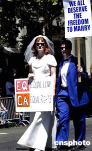 美加州同性戀要求享受結(jié)婚權(quán)
