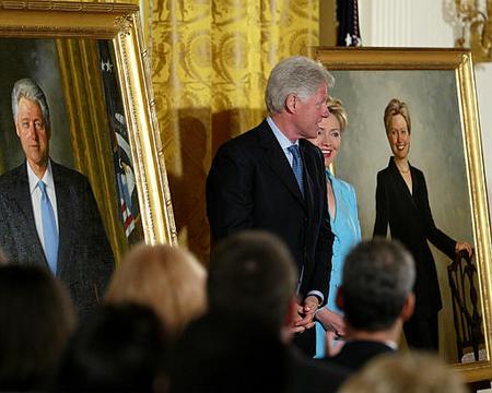 在白宮東廳所舉行的總統(tǒng)夫婦畫像懸掛儀式上,布什稱贊克林頓作為一名為公眾服務(wù)的政治界人士“向人們展示了令人難以置信的活力以及偉大的個(gè)人號(hào)召力”。布什在發(fā)表講話時(shí),克林頓就坐在他面前的第一排座位之上,布什繼續(xù)說道:“作為美國總統(tǒng),他表現(xiàn)出了在公共政策方面的深謀遠(yuǎn)慮以及遠(yuǎn)見卓識(shí),他在危難當(dāng)中對(duì)人們表現(xiàn)出了偉大的感情,他所表現(xiàn)出的高瞻遠(yuǎn)矚是身為美國公民的人們所樂意看到的。比爾-克林頓將總會(huì)看到日子一天比一天好,美國人民也知道他正在努力工作,以使美好的日子盡快到來。在八年擔(dān)任美國總統(tǒng)的時(shí)間之內(nèi),毫無疑問的一點(diǎn)是比爾-克林頓非常熱愛他的工作,他給白宮帶來了活力與樂趣。他是一個(gè)充滿激情而又待人熱情的人,他可以做出很好的成績并最終將自己所追求的服務(wù)大眾的事業(yè)繼續(xù)推向前進(jìn)!辈际苍谥v話當(dāng)中還列舉了克林頓總統(tǒng)在任上的種種業(yè)績。