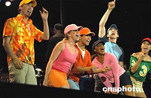 美東時(shí)間六月十四日晚,一萬(wàn)多人來(lái)到紐約中城的布萊恩特公園觀看由百老匯明星們演出的第三屆《星光下的百老匯》歌舞晚會(huì),這場(chǎng)演出標(biāo)志著紐約夏日文娛季節(jié)的開(kāi)始。圖為百老匯歌星們高唱《棒球混響曲》。作者:陳建
