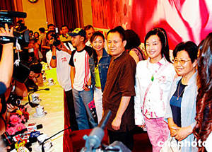 由中國著名電影明星劉曉慶(右二)加盟的電影《春花開》,6月16日日在北京人民大會(huì)堂舉行開機(jī)儀式。這部電影由中國第六代電影導(dǎo)演代表之一的劉冰鑒(右三)執(zhí)導(dǎo),他拍攝的《硯床》、《男男女女》等電影作品在海外電影節(jié)上多次獲獎(jiǎng)。中新社記者:王麗南