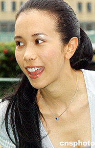 香港歌星莫文蔚,六月十七日出席在香港跑馬地馬場舉行的“2003/2004香港賽馬會冠軍人馬頒獎典禮”打氣活動。中新社記者:錢興強(qiáng)
