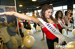 六月十九日,按照二零零四年國際旅游小姐冠軍總決賽的日程安排,來自五十多個國家和地區(qū)的參賽佳麗在杭州參加健身鍛煉。中新社記者:盛佳鵬