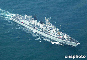 20日8時許,中國人民解放軍海軍北海艦隊“哈爾濱”號導(dǎo)彈驅(qū)逐艦迎著濃霧,引領(lǐng)著中英兩國艦艇編隊駛離青島港,劈波斬浪朝著青島附近的黃海海域駛?cè)ィ瑑蓢\妼⒃谶@里展開聯(lián)合海上搜救演習(xí)。