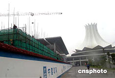 廣西南寧國際會展中心是每年一度中國-東盟博覽會唯一指定場館,會展中心位于桂海高速公路南寧出口處,中心拱頂猶如一朵朱槿花(南寧市市花),盛開在南寧民歌廣場旁。從二零零四年起,中國-東盟博覽會每年十一月都將在廣西南寧舉辦。南寧國際會展中心二期工程是南寧市迎接中國-東盟博覽會的重大建設(shè)項目之一,計劃于二零零四年年內(nèi)完成。圖為正在加緊建設(shè)中的南寧國際會展中心二期工程。中新社記者:張勤