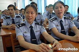 為了迎接“中國(guó)——東盟博覽會(huì)”的到來(lái),提高警員的外語(yǔ)水平,掌握基本國(guó)際禮儀,六月二十一日南寧市交警迎接“中國(guó)——東盟博覽會(huì)”外語(yǔ)培訓(xùn)班在廣西國(guó)際青年交流學(xué)院舉辦開(kāi)班典禮,培訓(xùn)主要以學(xué)習(xí)英語(yǔ)及越語(yǔ)等東盟各國(guó)小語(yǔ)種為主,交警們正在認(rèn)真學(xué)習(xí)越語(yǔ)“你好”。中新社記者:張勤