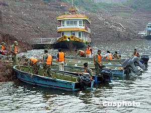 今日凌晨兩時三十分左右,記者趕到事發(fā)的黃河小浪底北碼頭,只見現場燈火通明,庫區(qū)的水面上搜救船只往來穿梭,一派緊張繁忙的景象。