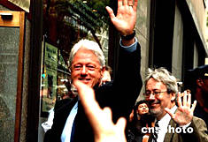 圖為克林頓中午走進曼哈頓中城的巴恩斯·諾布爾書店參加三個多小時的簽名活動。