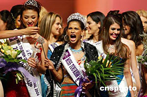 6月29日,令人矚目的2004國(guó)際旅游小姐冠軍總決賽在浙江杭州落下帷幕。印度選手ZABINA ABDUL RASHID KHAN,(中)從來自51個(gè)國(guó)家的53位旅游形象大使中脫穎而出獲得冠軍。德國(guó)選手JOHNALENA KWASOW獲得亞軍,中國(guó)選手鈔俊男(左)也發(fā)揮了較好的水平,在強(qiáng)手如林的競(jìng)爭(zhēng)中獲得第三名。作者:饒強(qiáng)