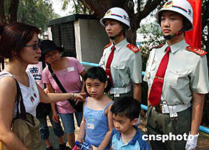 今日是香港回歸七周年紀念日,大批香港市民冒著高溫酷暑,踴躍前往解放軍駐港部隊軍營參觀,在赤柱、昂船洲、石崗三個開放的軍營里,充滿了市民對解放軍威武文明之師的贊譽,以及軍民聯(lián)歡的笑語。