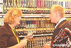 2004年香港夏季禮品、家庭用品及玩具展6日在會展中心開幕,展覽會吸引了1300家來自19個國家及地區(qū)的公司參加,泰國的插花吸引著參觀者。中新社記者:趙振清  參加2004年香港夏季禮品、家庭用品及玩具展的菲律賓工藝品贏得商人關注。中新社記者:趙振清