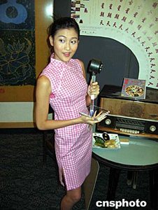 影星李彩樺六日應(yīng)邀出席由香港民政事務(wù)局和商業(yè)電臺合辦的“講古星期天”記者招待會,李身穿粉紅色旗袍配合懷舊節(jié)目,更添魅力。作者:李炘