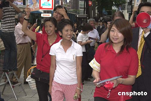 日本第二十屆參議院選舉七月十一日結(jié)束投票,并于十二日凌晨公布全部統(tǒng)計結(jié)果。擁有一半中國血統(tǒng)的日本知名電視主持人蓮舫當(dāng)選為參議員。蓮舫是日本民主黨推薦的候選人,她在東京選區(qū)的競選中獲勝,這也是日本國會中首次出現(xiàn)華裔議員。圖為蓮舫(圖中白衣者)在日前的街頭選舉活動中。作者:王健