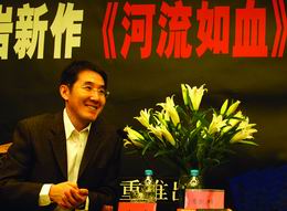 在新聞發(fā)布會上,對出版社和記者的提問,海巖妙語連珠,他告訴在場記者,現(xiàn)在流行起一些莫名其妙,看不太懂的名字,這部小說原來的名字是《自古忠誠無孝子》,出版社說不好。改成《河流如血》出版社就同意了。他解釋說:“我比較喜歡河流!