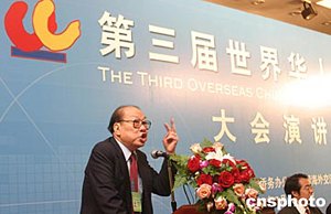 菲律賓陳永栽集團(tuán)董事長陳永栽在《第三屆世界華人論壇》上作《從中菲經(jīng)貿(mào)發(fā)展探討華商在“中國——東盟自由貿(mào)易區(qū)”建設(shè)中的地位與作用》的大會(huì)演講。中新社記者:史利