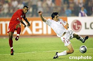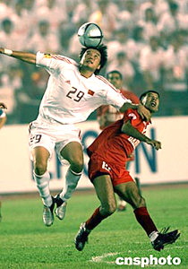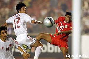 七月十七日晚,在北京工人體育場進行的亞洲杯揭幕戰(zhàn)中國隊對巴林隊的比賽中,巴林隊二比二戰(zhàn)平中國隊。