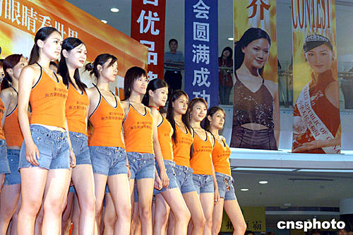 七月十八日,第三屆南方新絲路模特大賽開營儀式在廣州美博城舉行。一百名美麗選手首次接受了公眾和媒體的檢閱。她們將在七月十九日到三十一日進行封閉式的美麗訓(xùn)練。作者:劉衛(wèi)勇