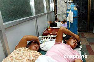 七月十九日,幾名傷者在開(kāi)封市第一人民醫(yī)院輸氧。位于河南開(kāi)封的中國(guó)石油集團(tuán)下屬某公司一化工廠冷凝器發(fā)生爆炸,大量氯化氫氣體泄漏。該廠南側(cè)的崗橋村三百七十六名村民出現(xiàn)呼吸道和眼部刺激反應(yīng),較重的出現(xiàn)嘔吐和頭痛癥狀不良反應(yīng),開(kāi)封市第一人民醫(yī)院和開(kāi)封縣各醫(yī)院已轉(zhuǎn)移了上百名村民。截至十九日,大部分村民已返家。此次泄漏事故未造成人員死亡。事故中四名責(zé)任人已被警方控制。中新社記者:慎重