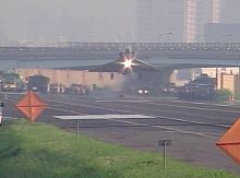 據(jù)悉,這次演練是為驗證“固安作戰(zhàn)計畫”中山高速公路戰(zhàn)備跑道段的戰(zhàn)備可行性,為26年來首次。在臺軍“固安作戰(zhàn)計畫”中,已將中山高速公路上包括桃園縣的中壢“楊梅段”、新竹縣的“湖口段”、嘉義縣的“大林段”、臺南的“麻豆段”及“仁德段”五處列為重要的戰(zhàn)備跑道。