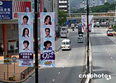 香港第三屆立法會(huì)選舉22日開始接受提名,為期兩周,到8月4日截止。圖為有關(guān)立法會(huì)選舉宣傳海報(bào)在公路上懸掛,鼓勵(lì)已登記的選民投票。作者:譚達(dá)明