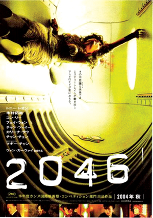 雖然木村在《2046》占戲不多,但始終是“地頭蟲(chóng)”,加上與木村演未來(lái)世界情侶的王菲在日本知名度甚高,日本方面自然以兩人做宣傳重點(diǎn)。其中一款黑白海報(bào),木村與王菲都閉起雙眼頭碰頭,木村用手輕攬王菲,意境凄美;另一款彩色海報(bào)則只有王菲,穿著超時(shí)空服裝坐在“機(jī)艙”內(nèi),視覺(jué)上令王菲的身形非常突出。