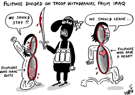 中新網(wǎng)7月25日電 在總統(tǒng)阿羅約的命令下,為協(xié)助解救在伊拉克被綁架的菲國人質(zhì)克魯茲,菲律賓撤回了駐扎在伊拉克的維和部隊(duì),盡管這一決定使美國深感失望。