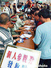 事前,駐港部隊(duì)已預(yù)先公告將于今日上午分別在港島中環(huán)軍營(yíng)、九龍槍會(huì)山軍營(yíng)和石崗軍營(yíng)設(shè)點(diǎn)派發(fā)個(gè)人參觀券。一萬(wàn)五千張參觀券中,個(gè)人券有一萬(wàn)二千張,其余為團(tuán)體券;市民每人最多可領(lǐng)取三張個(gè)人券。