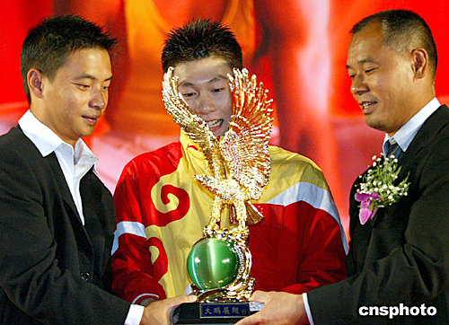 七月二十七日,中國體操宿將李寧(右)、李小雙(左)向即將出征奧運(yùn)會(huì)的體操名將李小鵬送上象征“大鵬展翅”的生日禮物,預(yù)祝他奧運(yùn)捧金。當(dāng)日是李小鵬二十三歲的生日。中新社記者:鄭萍萍